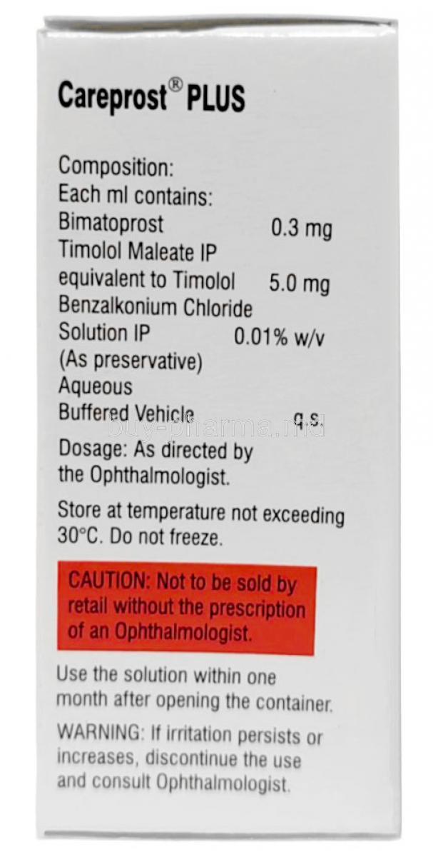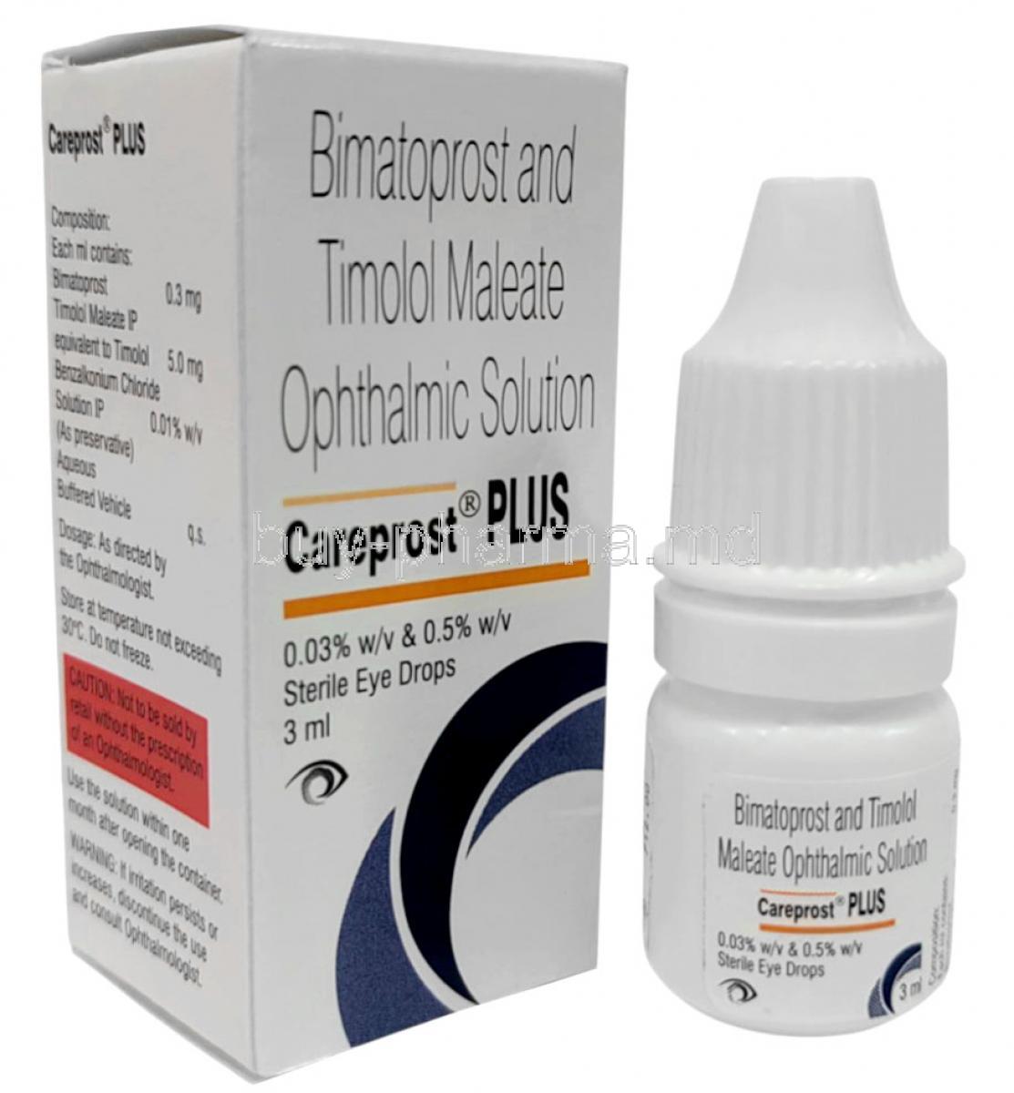 Careprost Plus Eye Drop, Bimatoprost/ Timolol eye drops work by increasing the drainage of aqueous humor or the clear watery fluid filling the space in front of an eyeball. This helps to lower the pressure within the eye.