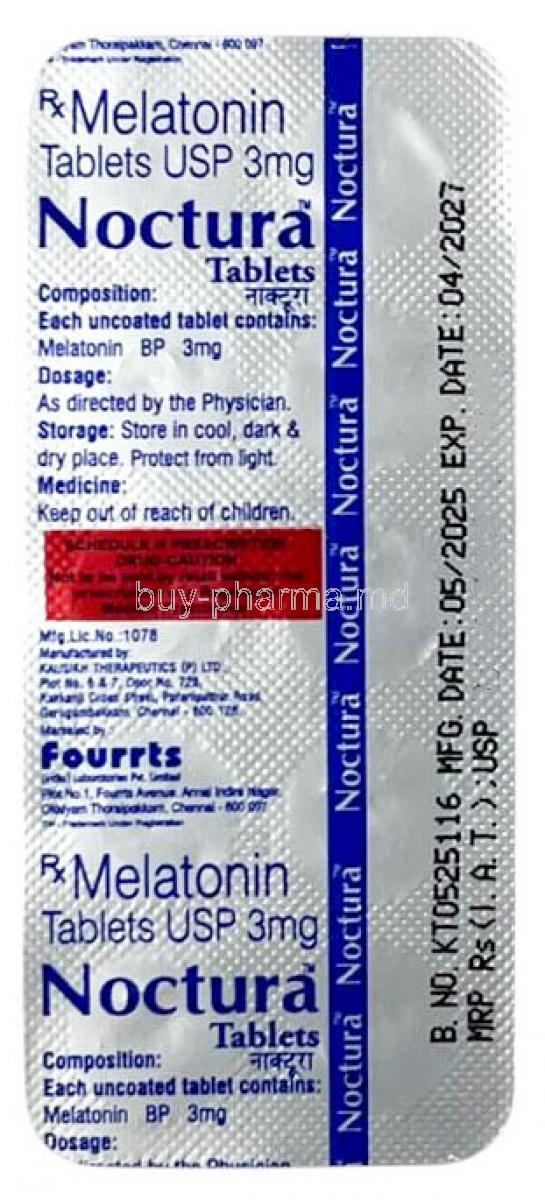 Noctura is a natural hormone when produced in the body known as the endogenous hormone. Noctura works like the natural melatonin chemical messenger that is released in the brain. Noctura helps to regulate the sleep-wake cycle. Noctura promotes sleep by setting the natural biological clock of the body.