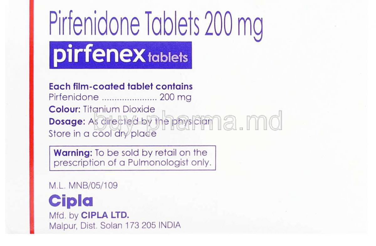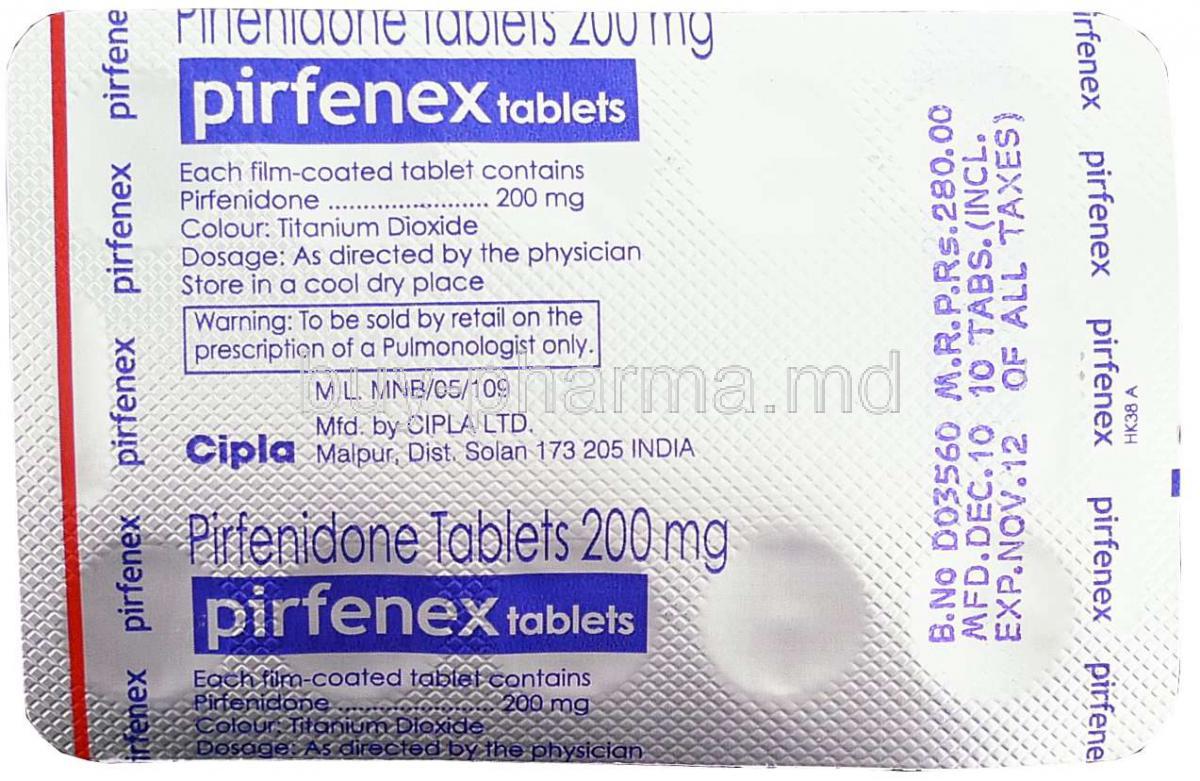 Pirfenex helps to reduce fibrosis (scarring) and swelling which causes harder for the lungs to work. Pirfenex is not a cure for idiopathic pulmonary fibrosis, but this medicine may slow the progress of this disease.