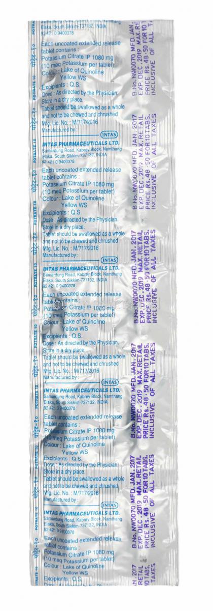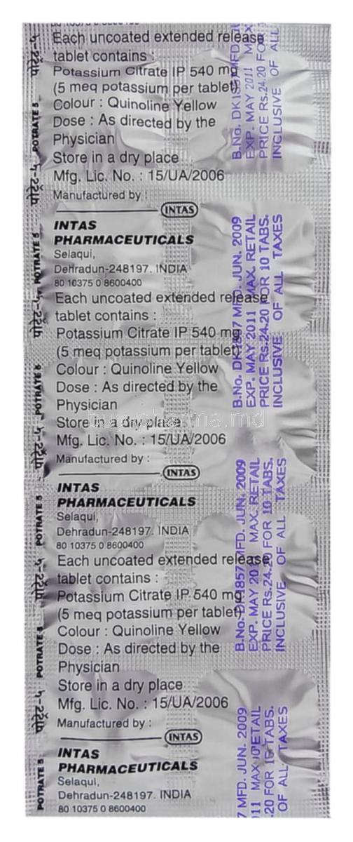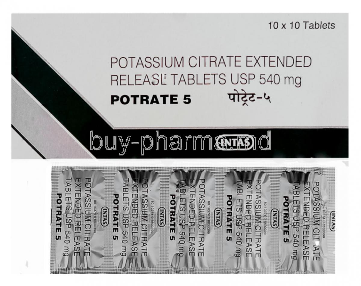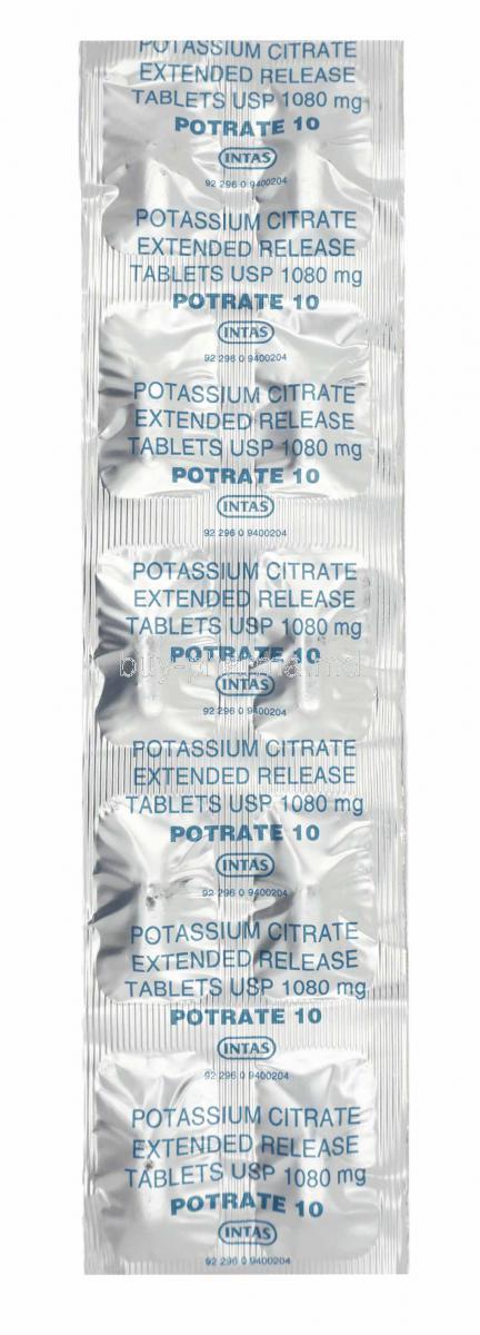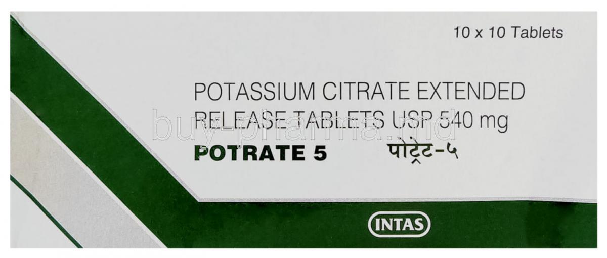 Potrate, Potassium Citrate ER is used as a dietary supplement, works to keep organs health and prevents diseases. Potrate, Potassium Citrate ER is also used to decrease uric acid in the body by increasing citrate and potassium levels in the bdoy.