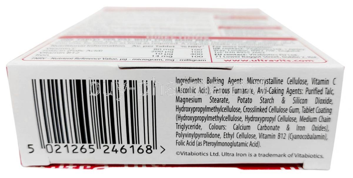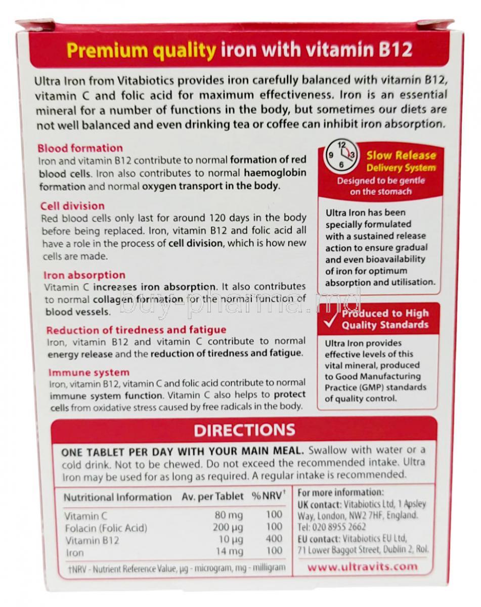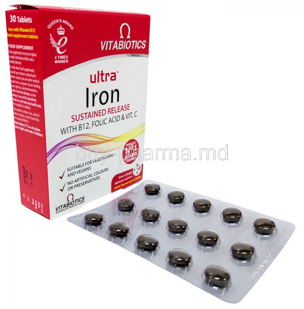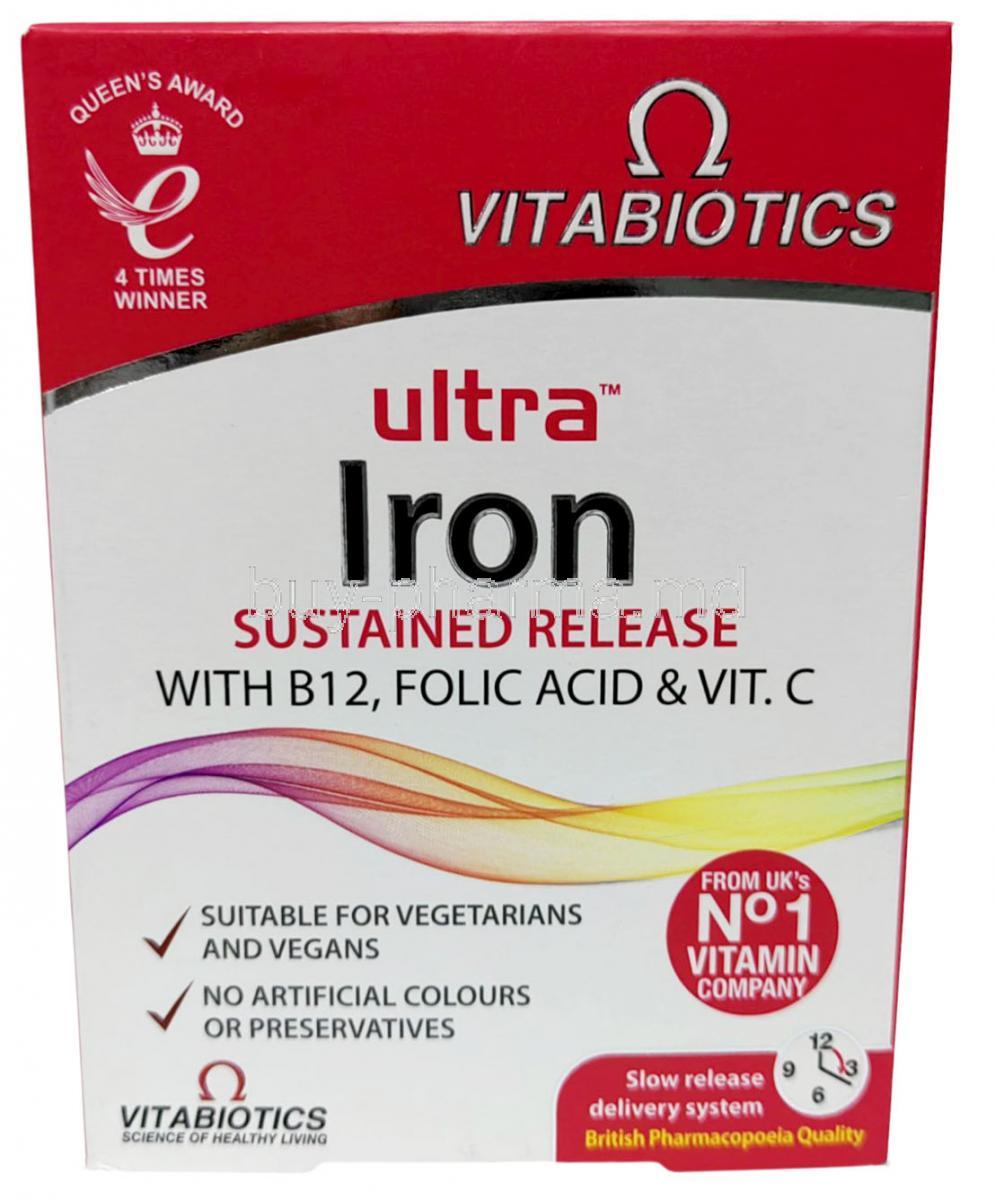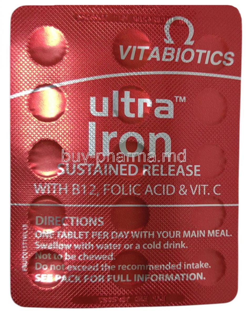 Vitabiotics Ultra Iron is used in the treatment of iron deficiency anemia and anemia due to chronic kidney disease. Vitabiotics Ultra Iron is also used as a nutritional supplement
