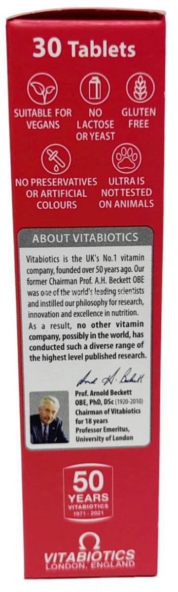 Vitabiotics Ultra Iron is important for many functions in the body, Vitabiotics Ultra Iron is especially important for the transport of oxygen in the blood.